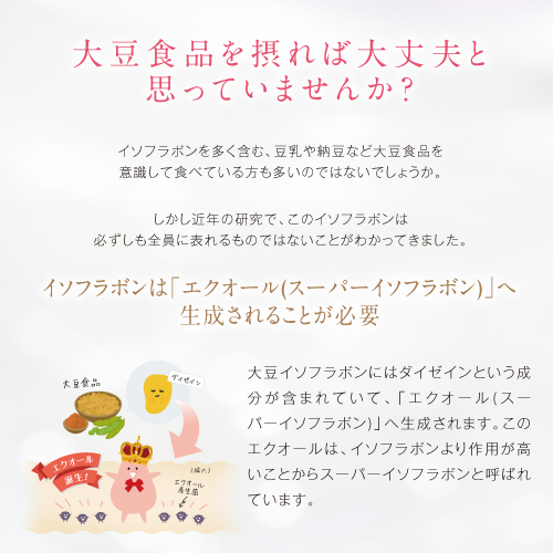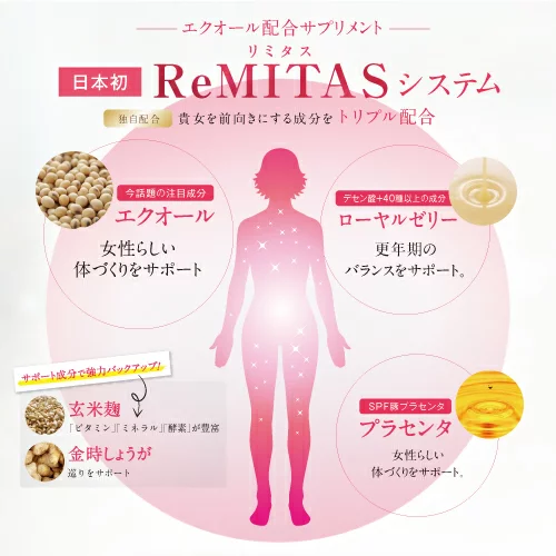 リミタスは、「エクオール」を中心に さらに、ローヤルゼリーやプラセンタを配合。
