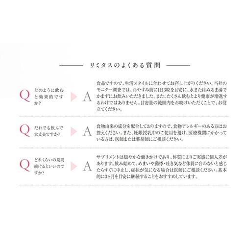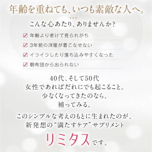 「リミタス」は、年齢と共に減少する女性としての輝きを取り戻すサプリメント。